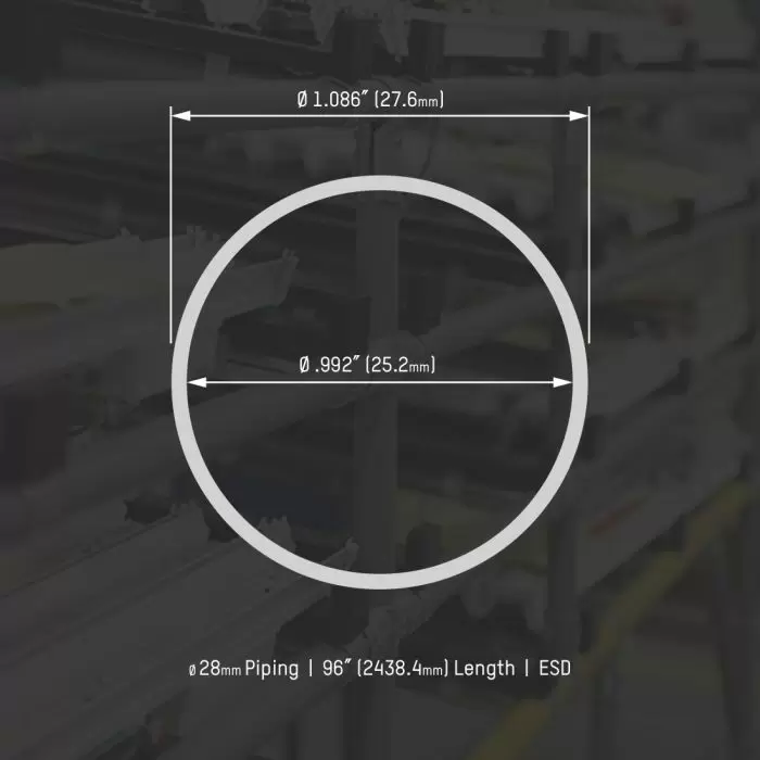 The EP-96-ST11 is an 8 ft stainless steel pipe ideal for ESD-compliant workstations, carts, and racks. With a 28 mm outer diameter, it integrates with modular lean systems while providing reliable static dissipation in industrial environments.